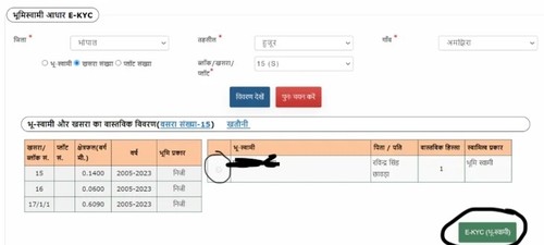 When Khasra details open, select your name and click on E-KYC (Landowner) button.